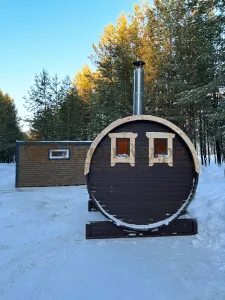 - Круглая баня-бочка 5,5 метров - раздевалка, парилка, моечная.